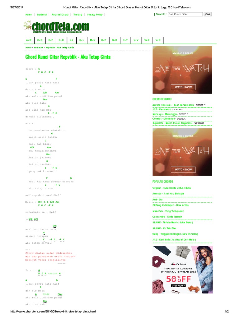 Kunci Gitar Repvblik Aku Tetap Cinta Chord Dasar Kunci