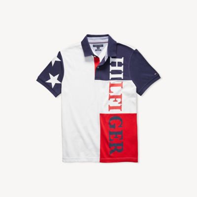 Tommy Hilfiger T Shirts Tommy Hilfiger Men Custom Fit Diagonal Logo Polo T Shirt Grey Black White